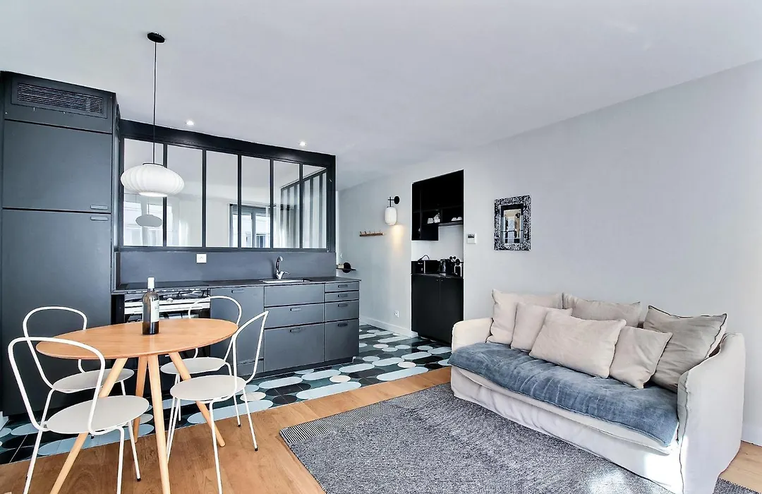 Among the self-catering amenities provided is a fully furnished kitchen with an electric kettle, a fridge, and oven. The apartment is also in proximity to Chatelet - Les Halles rail station.